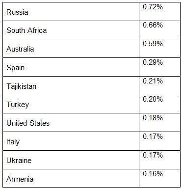 In 2019, cele 10 tari cu cel mai mare procent de utilizatori care se confruntau cu programe malware pentru Android erau: